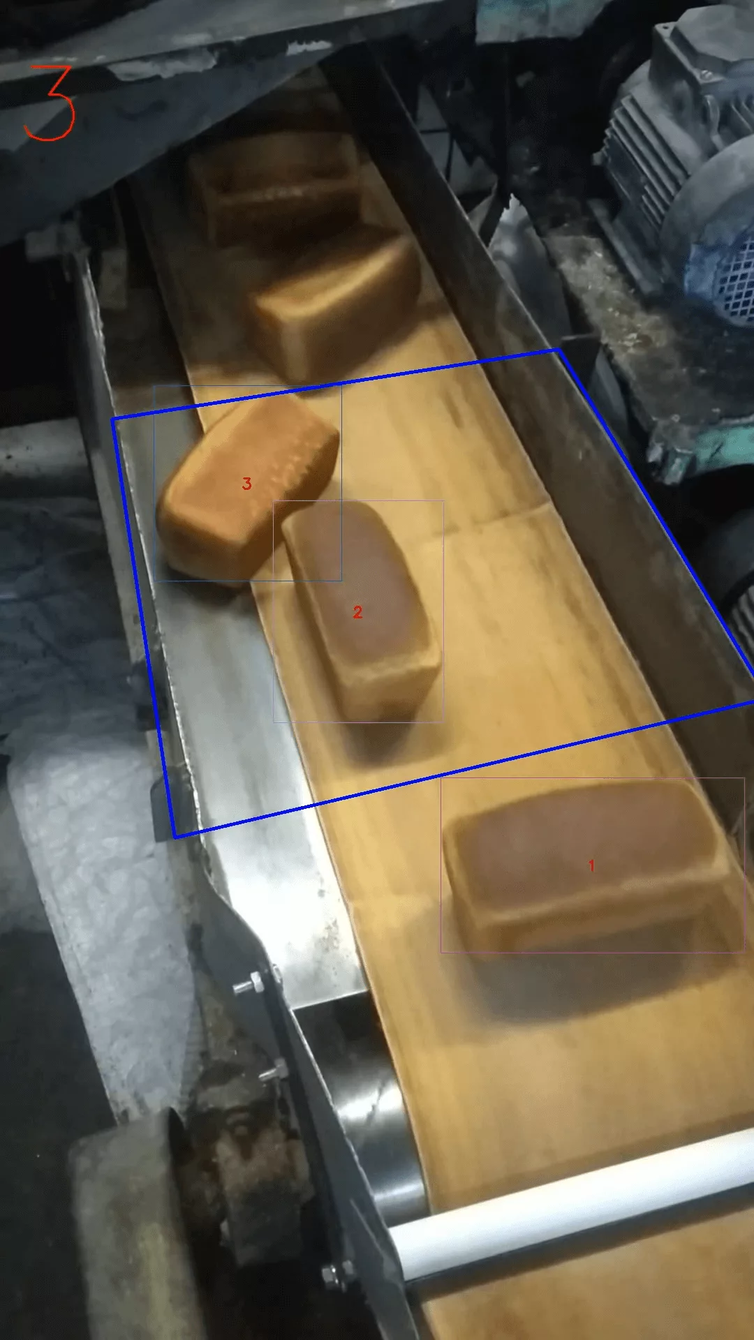 Then, however, it turned out that it was too late to count here. The bread disappears before it reaches the conveyor belt. Therefore, it is necessary to find earlier angles for shooting and counting.